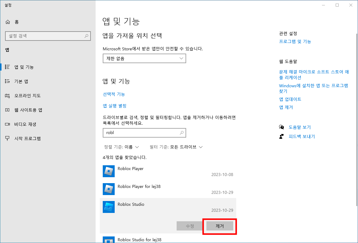로블록스 스튜디오가 이상이 생긴 경우에는 제거하고 다시 설치하는 것이 좋습니다.